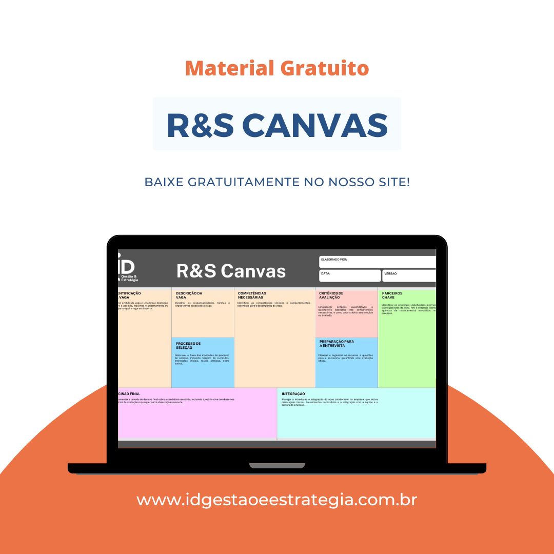 O R&S Canvas é a solução para estruturar e otimizar seu processo de recrutamento e seleção! Desenvolvido especialmente para ajudar empresas como a sua a definir critérios claros, alinhar expectativas e atrair candidatos qualificados.
